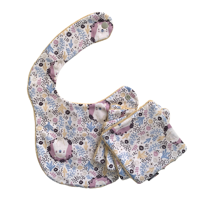 Un lot tout doux signé Mon Joli Bavoir : 1 bavoir et 4 lingettes lavables fabriqués en France. Le cadeau de naissance parfait, pratique et éthique !