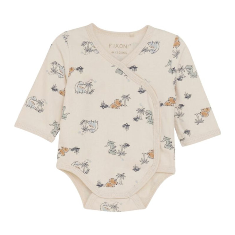 Body prématuré en coton bio motif dinosaure spécialement conçu pour les bébés prématurés.